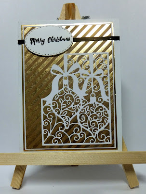 Dies are the same and I stamped using just the Merry Christmas from the Tattered Lace set, die cut using the stitched nested oval and then popped the sentiment after wrapping the base in twine.